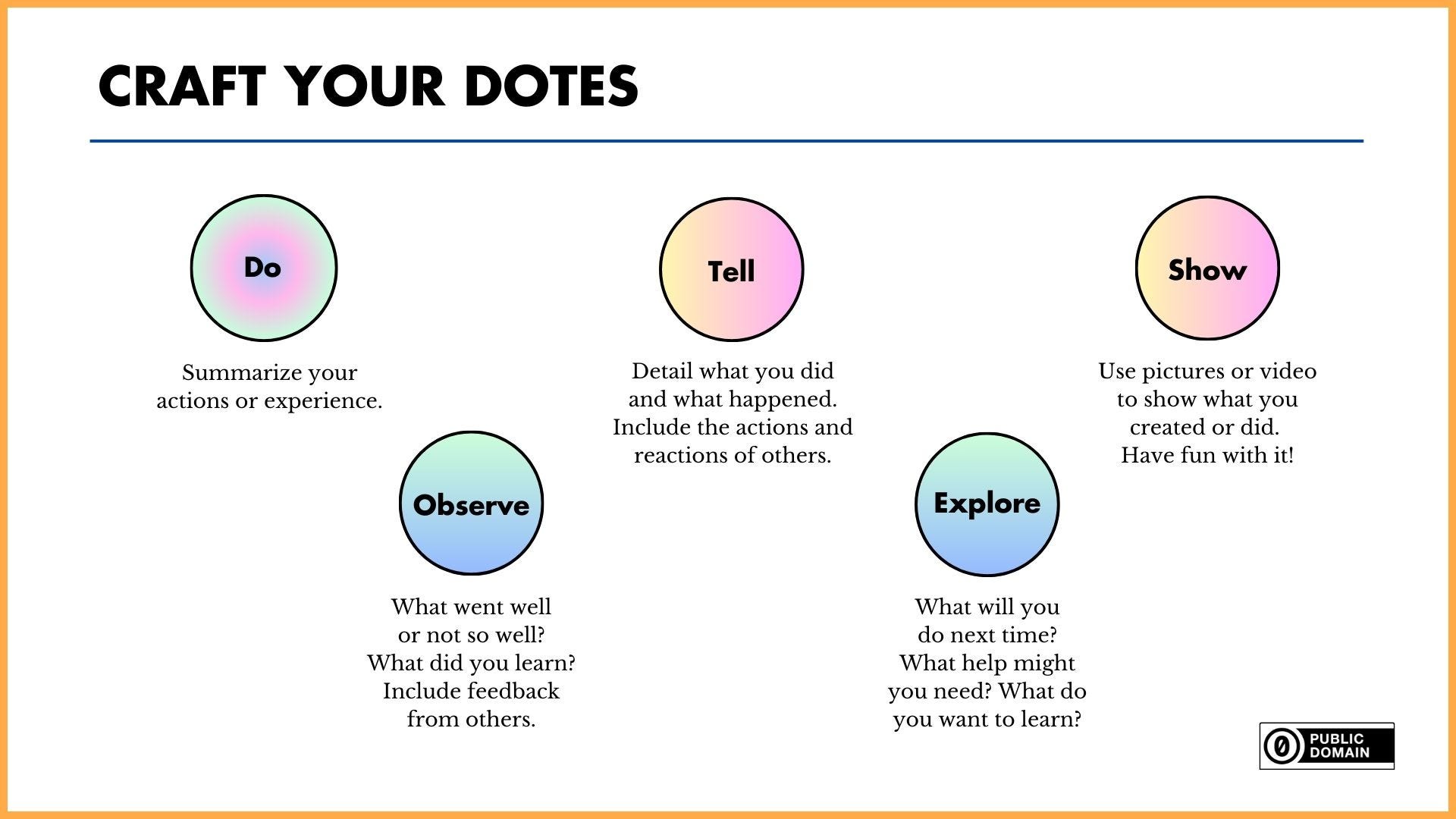 We call it DOTES—a five-part framework for learning stories. It’s simple, but powerful.